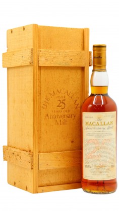 A 25 year old bottling of Scotch Whisky from The Macallan distillery. At a volume of 43% ABV this whisky is bottled at an optimal drinking strength. Enjoyed neat or with a drop of water.