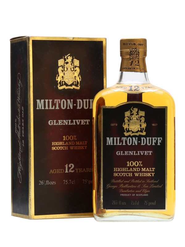 Miltonduff Glenlivet Bottled 1970s Flat Bottle was distilled at the Miltonduff distillery. This Scotch Whisky has no age statement - in other words the length of time the spirit in the bottle was matured has not been declared. At 43% you'll find that this whisky is bottled at an ideal sipping strength. Comes in the regular bottle size of 75cl.